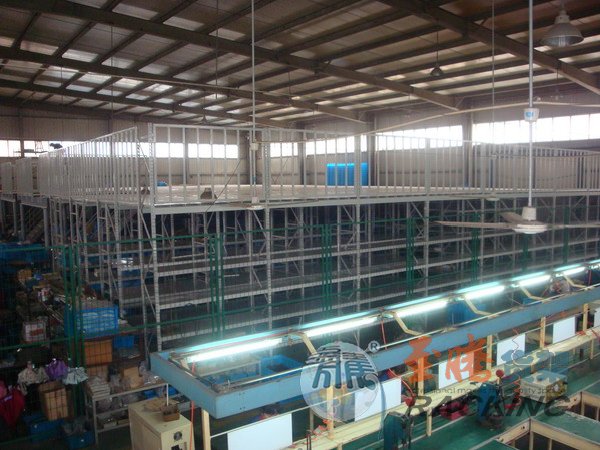 鋼平臺(tái)是閣樓貨架的一種,可以將較高的倉(cāng)儲(chǔ)空間合理規(guī)劃,成為多層的空間。我們至騰為春暉集團(tuán)設(shè)計(jì)生產(chǎn)的是一層鋼平臺(tái),在鋼平臺(tái)的二層,又將其原有的貨架置于鋼平臺(tái)上。鋼平臺(tái)上放置貨架,對(duì)設(shè)計(jì)要求比較嚴(yán)格。因?yàn)樨浖艿乃谐休d最終會(huì)由四個(gè)腳轉(zhuǎn)到樓面,壓力過(guò)于集中。樓下是開(kāi)放式空間,可以擺放任意貨物。