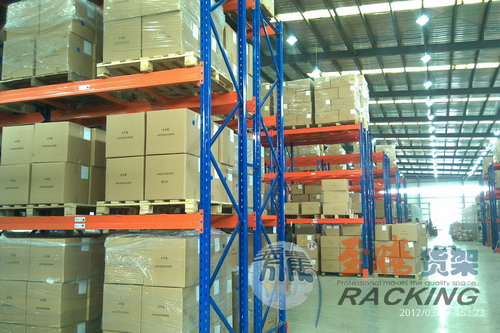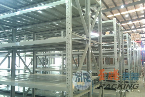 重型貨架多采用雙排連接,通過連接桿來分隔雙排貨架。